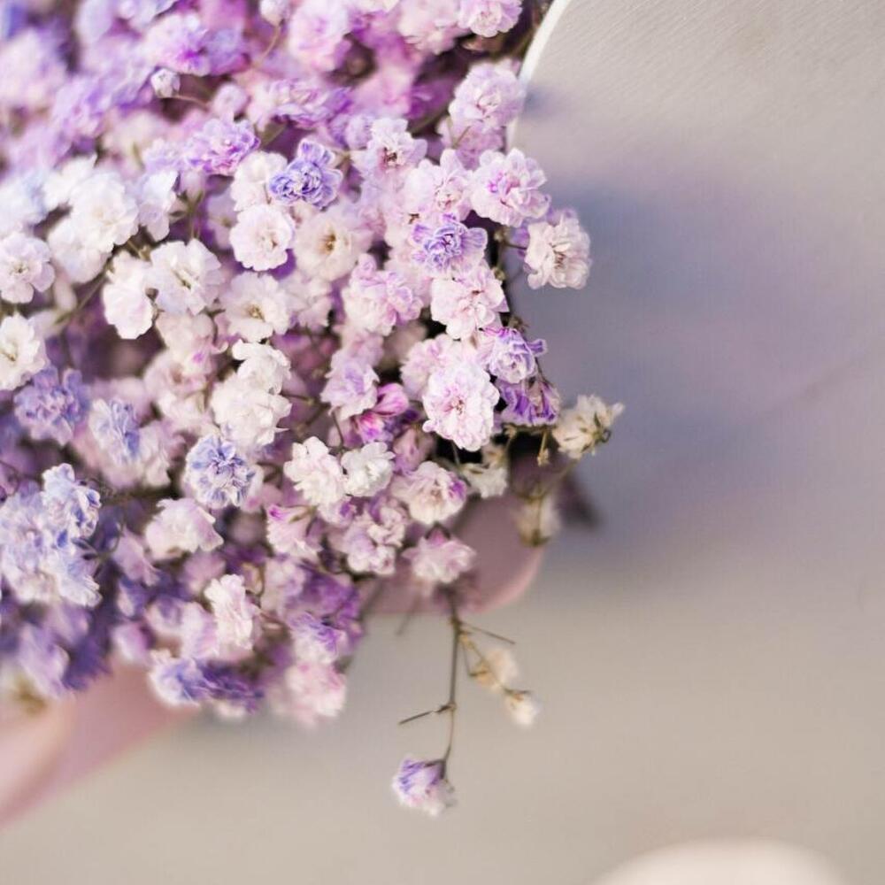 «Лавандовое созвездие» Букет из розы, гвоздики, статица и хлопка