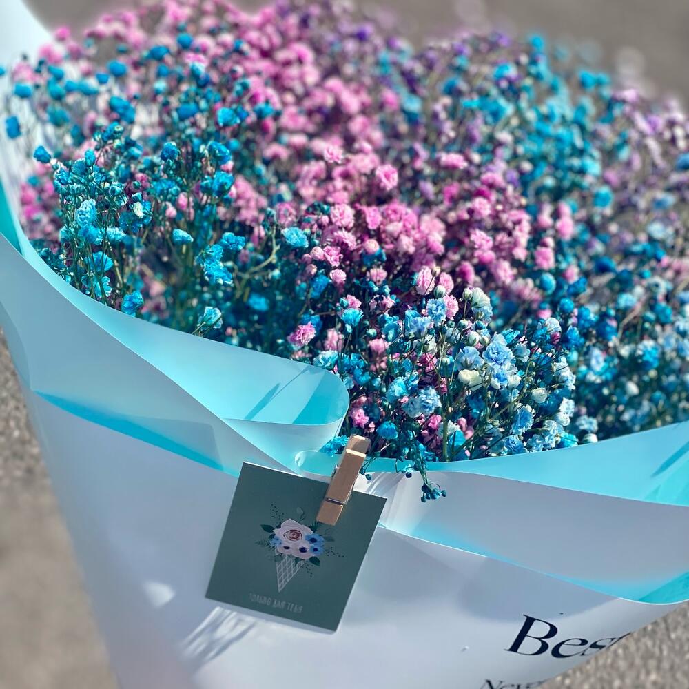 Монобукет из крашеной гипсофилы