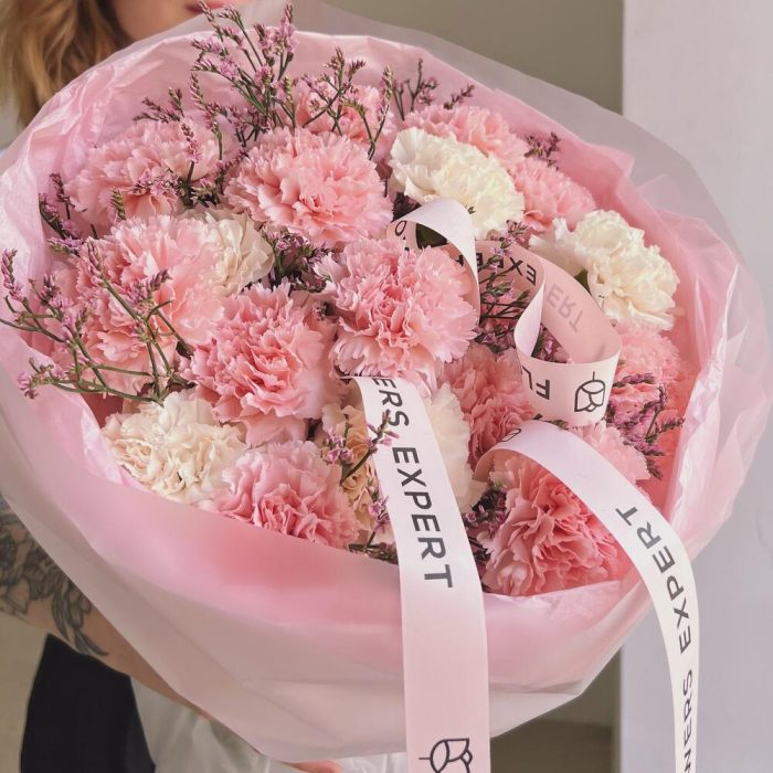 Букет из 19 пушистых гвоздик “PINK WHITE”