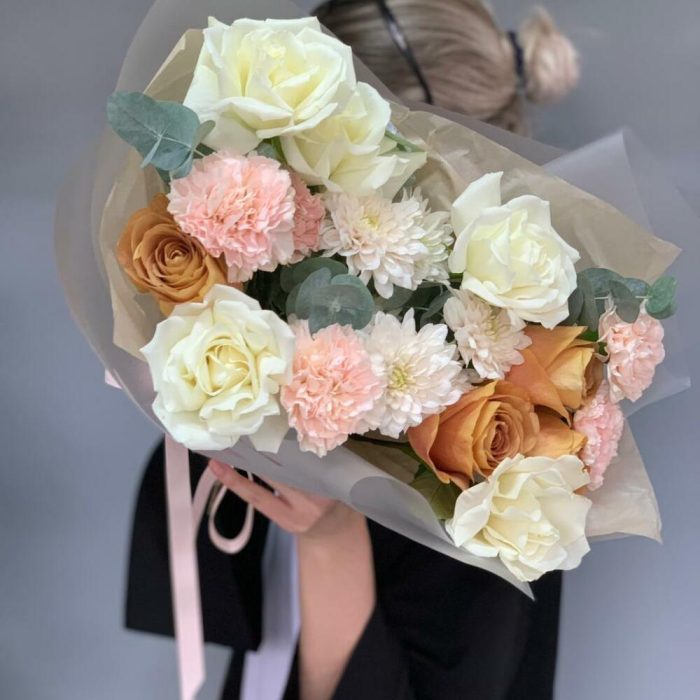 Гвоздики, Кустовые розы, Лизиантусы, Пионовидные розы, Розы