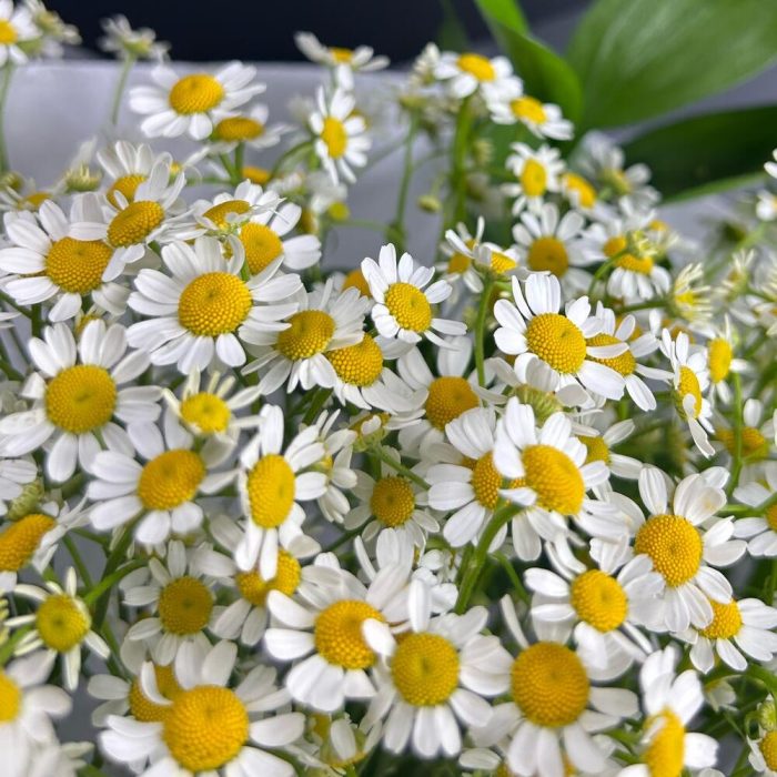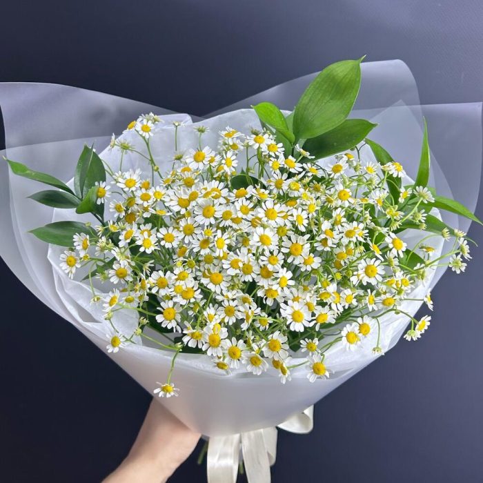Рускус – 3 шт.Упаковка дизайнерская – 1 шт.Матрикария (ромашка) – 9 шт.