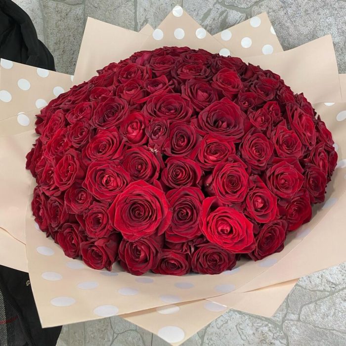 101 красная роза 60 см в букете