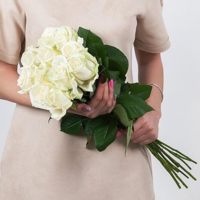 Метки: 11 роз, Белые розы, от 1000 до 2000 руб, Роза 60 см