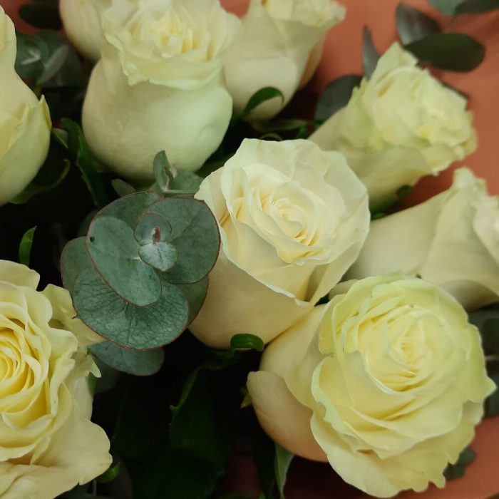 Белая роза и Эвкалипт ( 9 штук )
