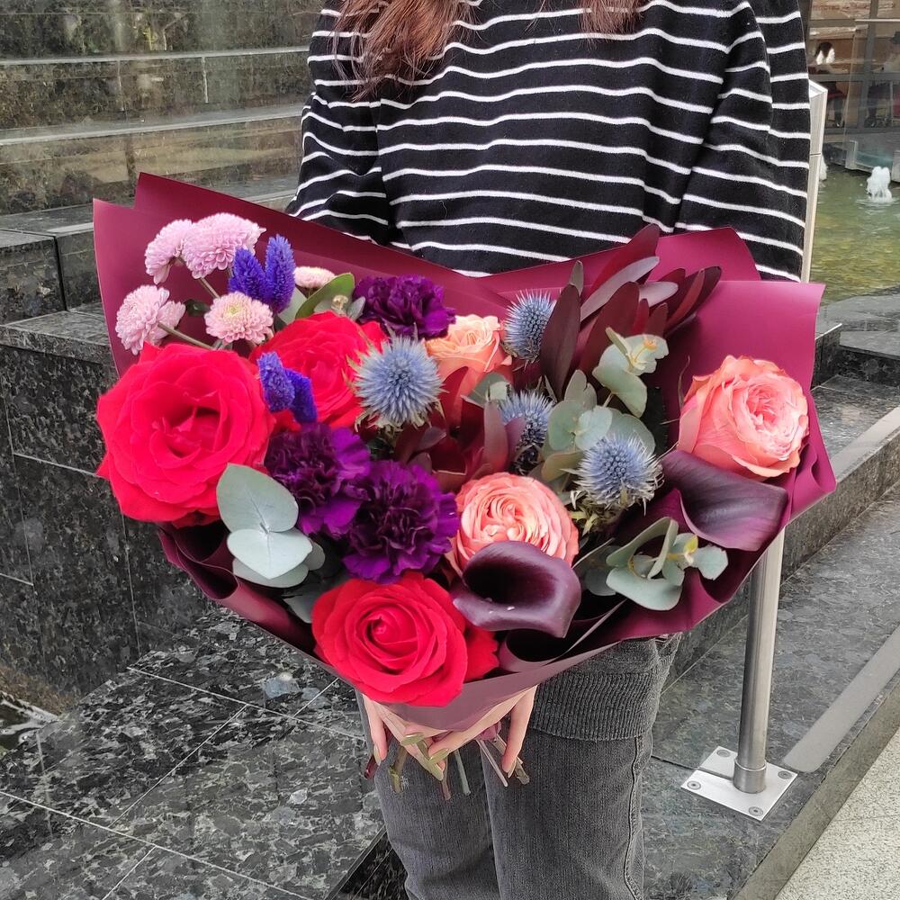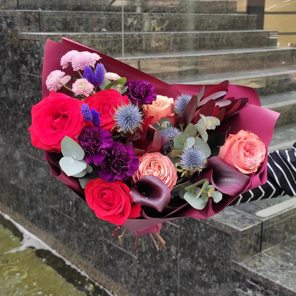 Borsch - Букет из алых роз,эрингиума и калл