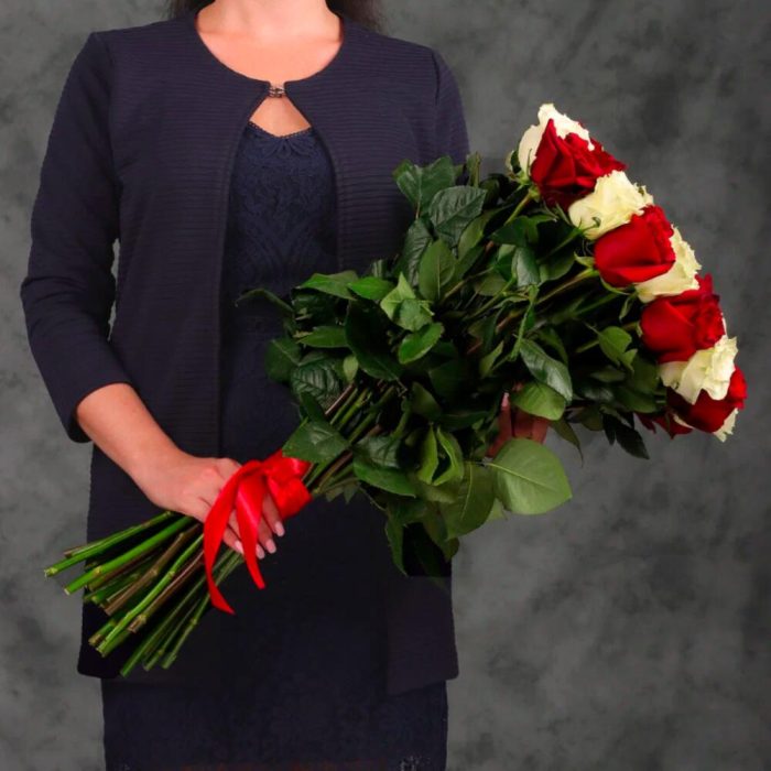 Букет 31 красная и белая роза