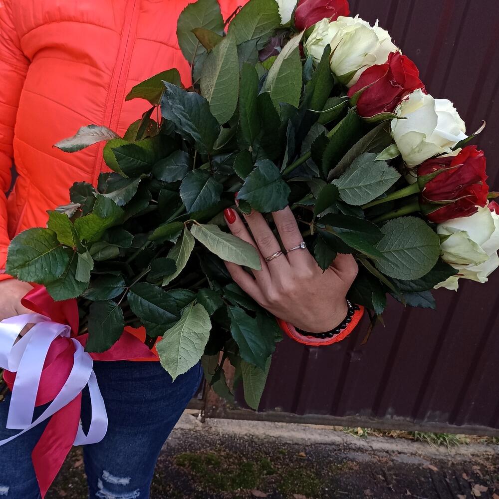 Букет 51шт красно-белый микс