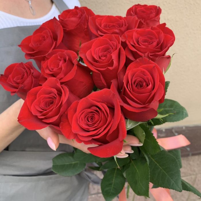 Роза красная – 11 шт. Оформление лента – 1 шт.