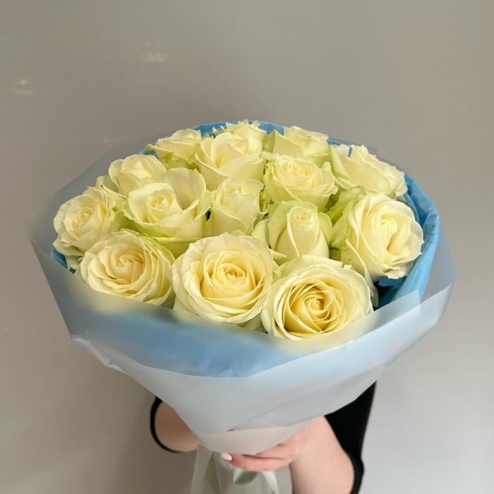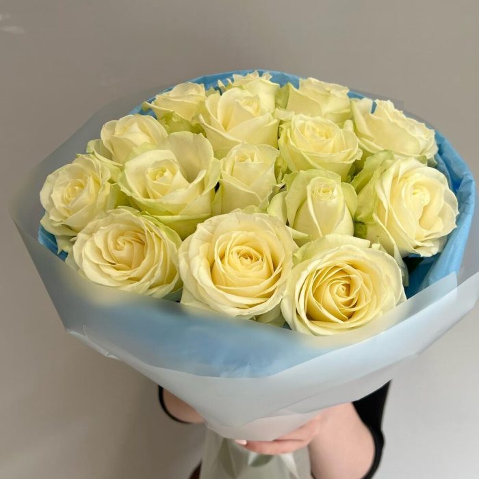 Букет из 15 белых роз в упаковке