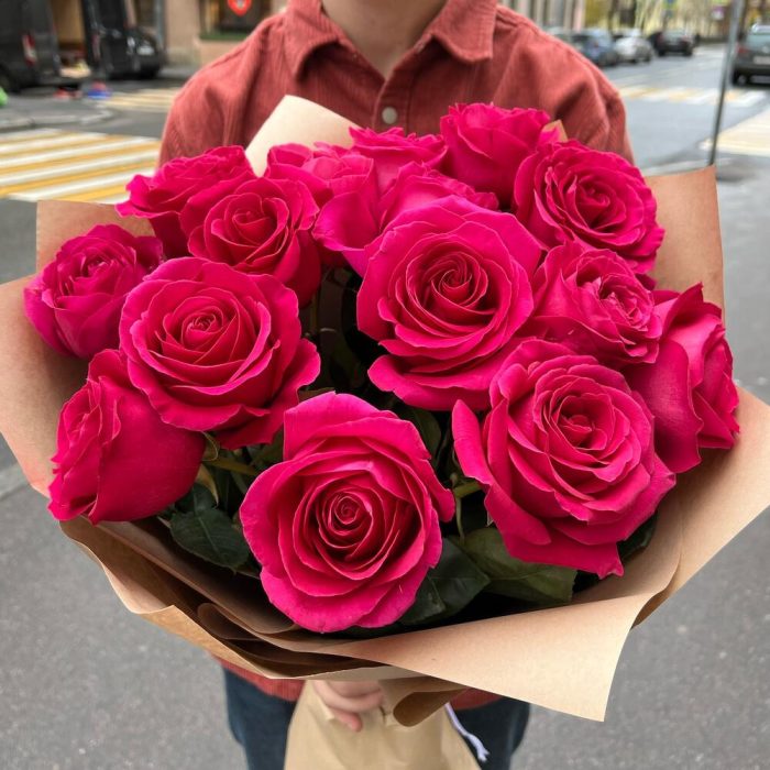 роза розовая ароматная Pink Floyd – 15 шт.Упаковка крафт – 2 шт.Лента атласная белая – 1 шт.