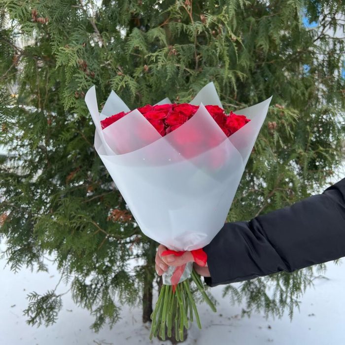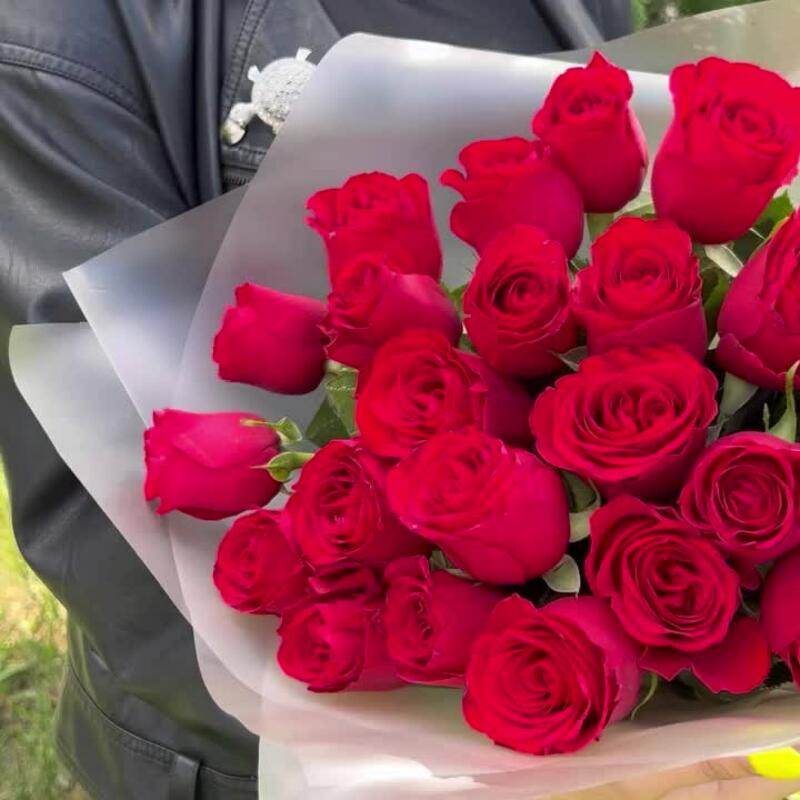 Роза красная 40 см – 25 шт.Пленка матовая – 2 шт.