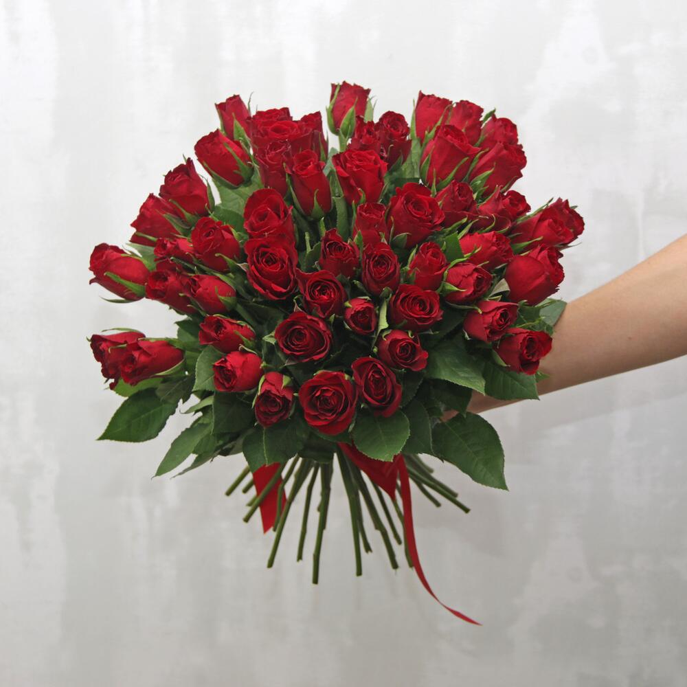 Букет из 51 красной розы 35-40 см (Кения) под ленту