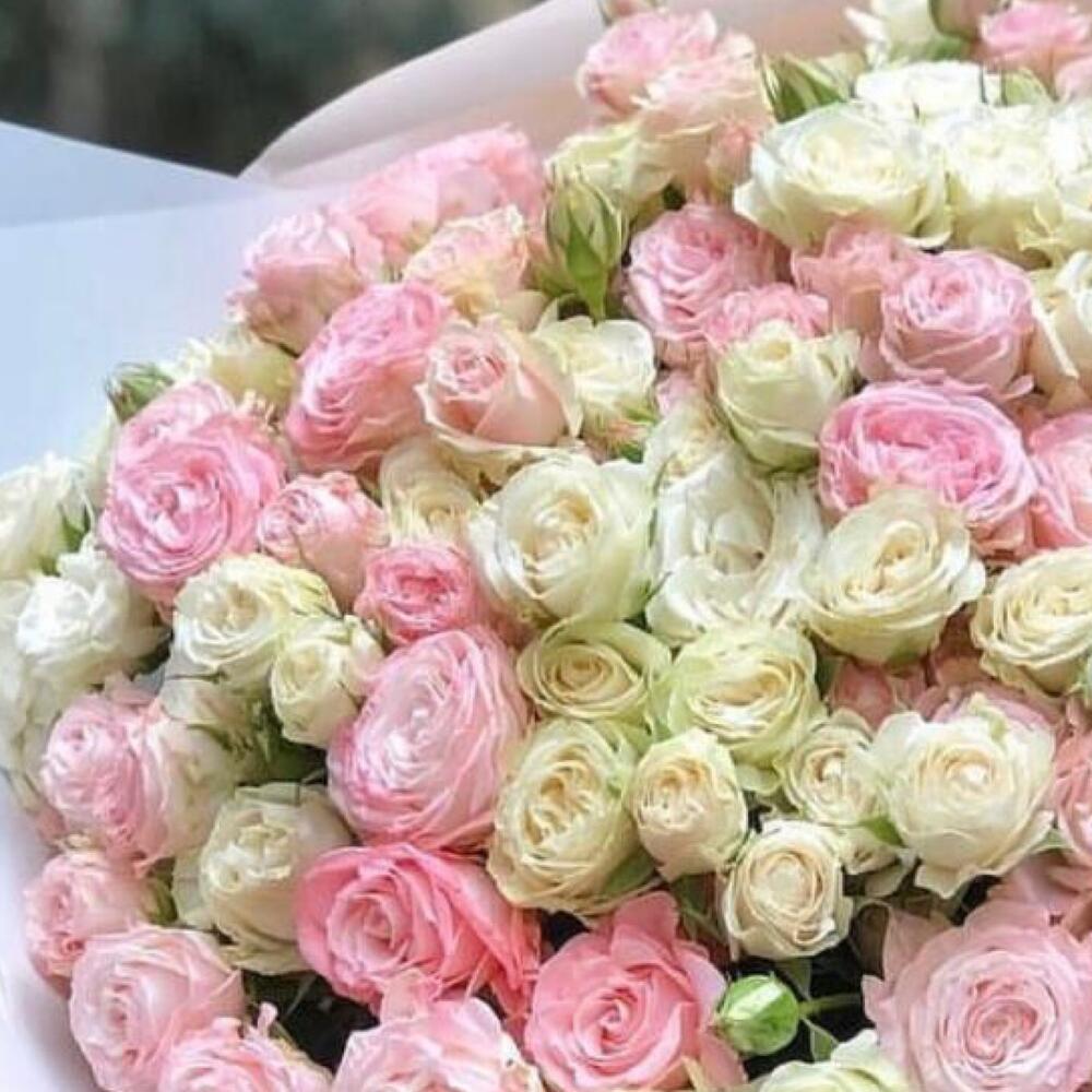 Букет из 51 нежной пионовидной кустовой розы
