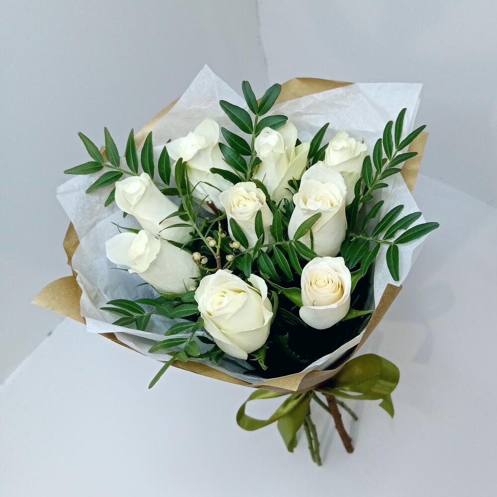 Букет из 9 роз белых с фисташкой