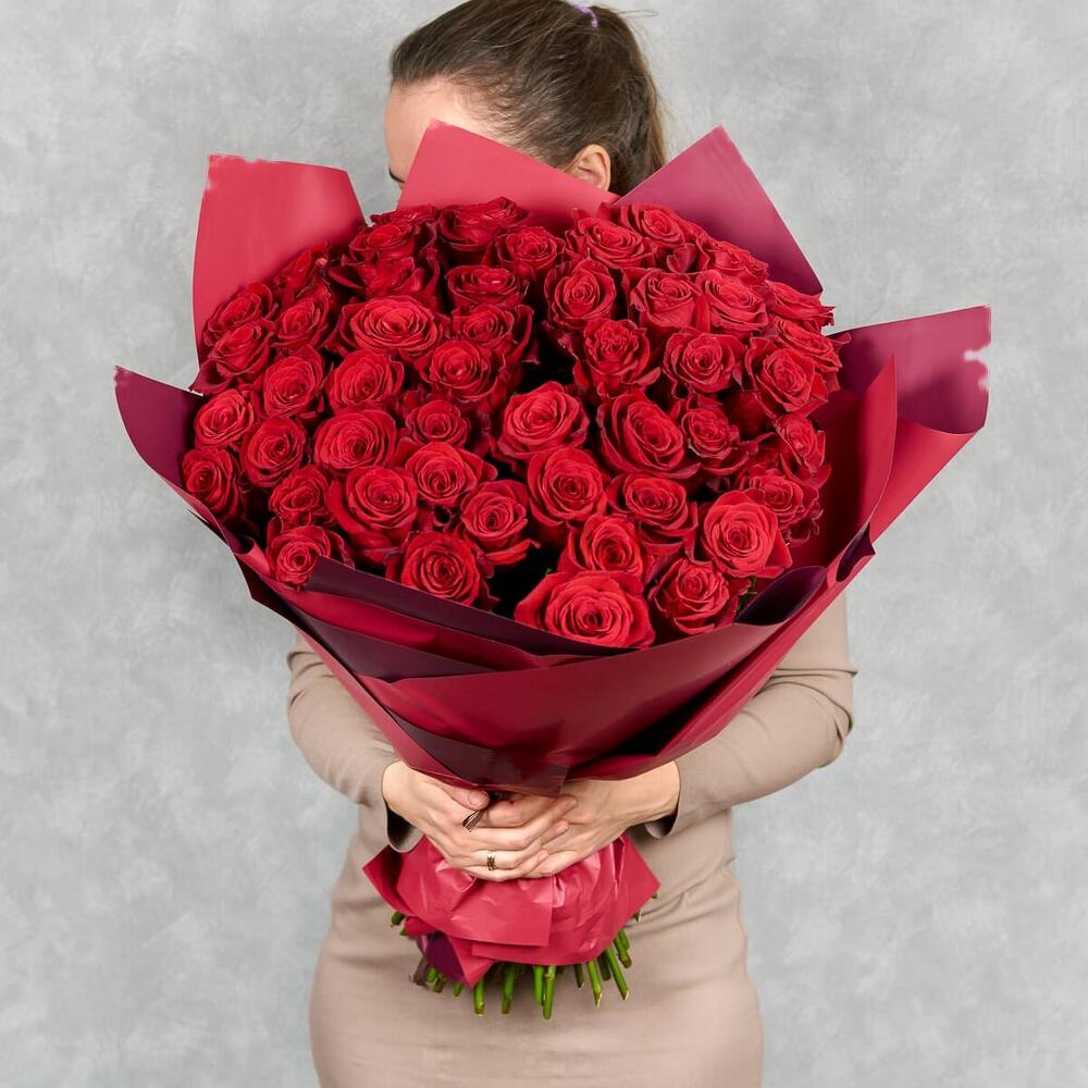 Букет из 51 красной розы 35-40 см (Кения) в стильной упаковке