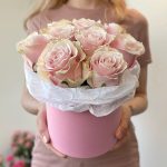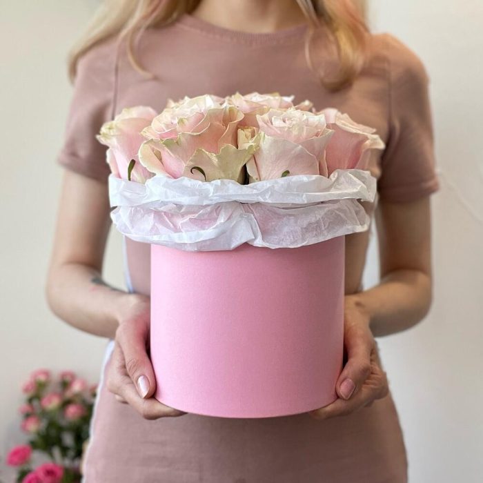 Букет из нежно-розовых роз в коробке