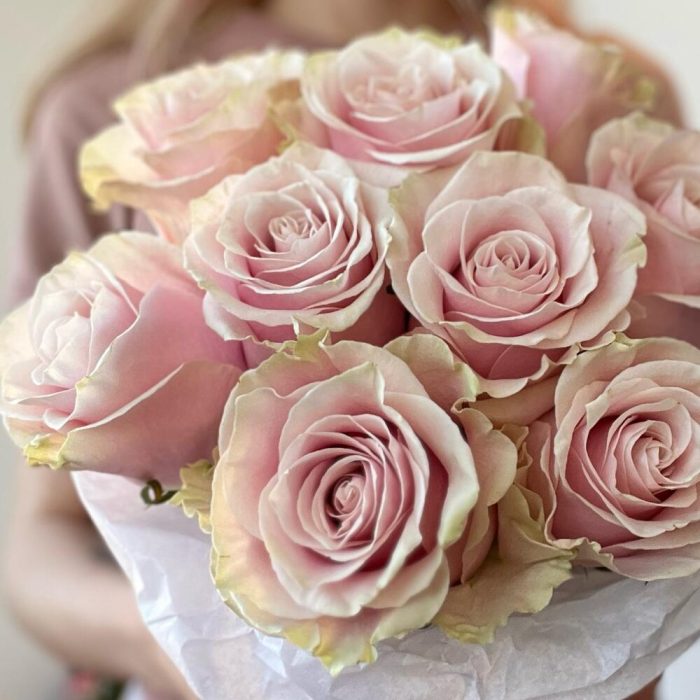 Букет из нежно-розовых роз Пинк Мондиаль 9шт