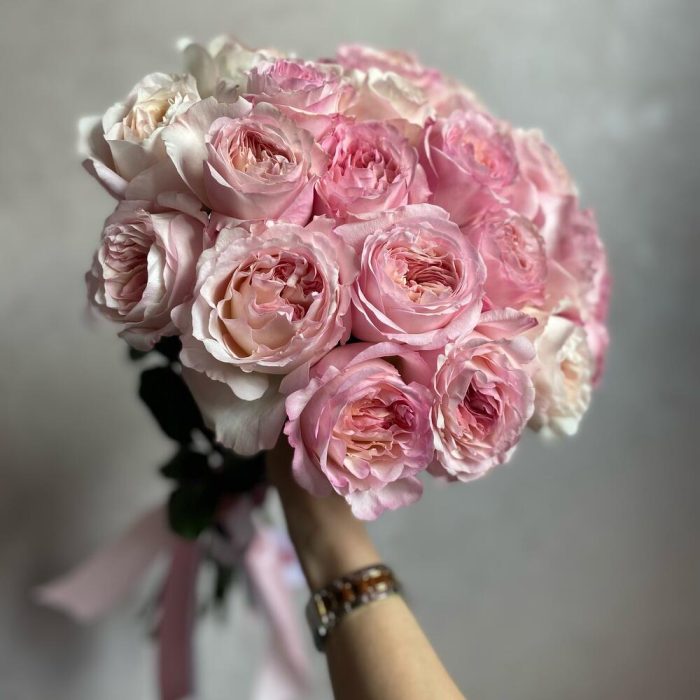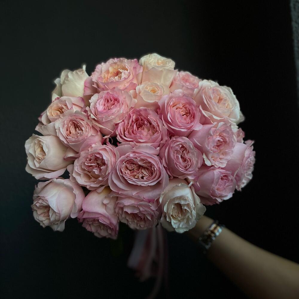 Пионовидная роза – 25 шт.Лента атласная – 3 шт.