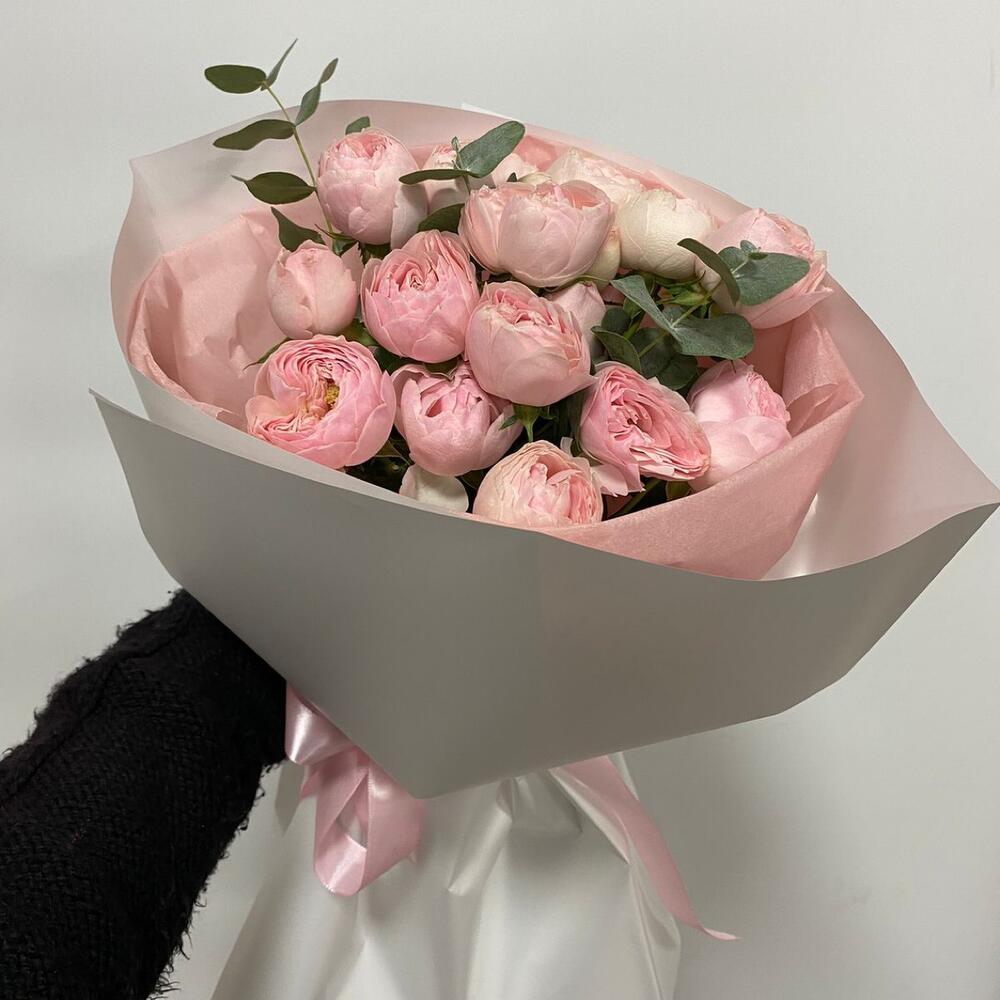 Гвоздики, Кустовые розы, Пионовидные розы, Розы