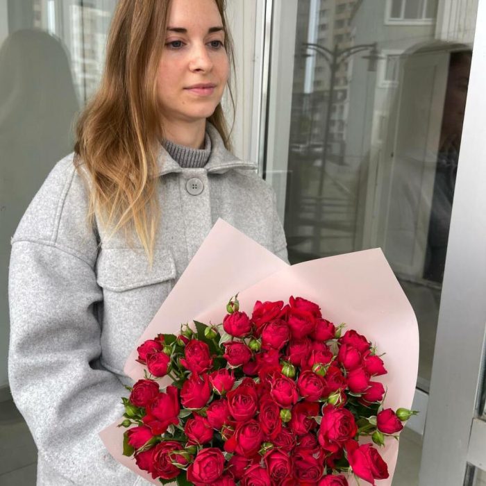 Упаковка – 1 шт. Атласная лента – 1 шт. красная веточная роза (веток) – 9 шт.