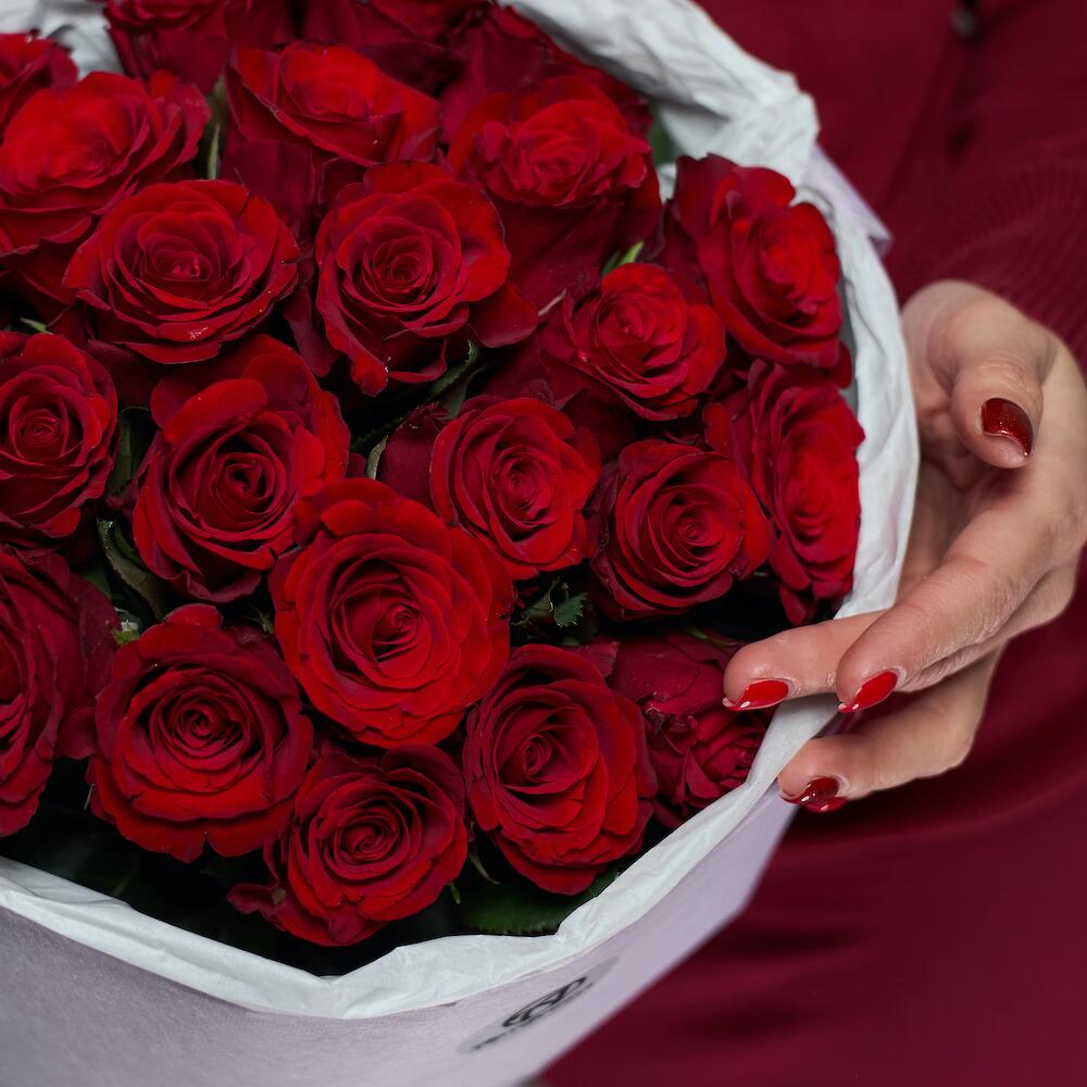 Букет из 51 красной розы 35-40 см (Кения) в стильной упаковке