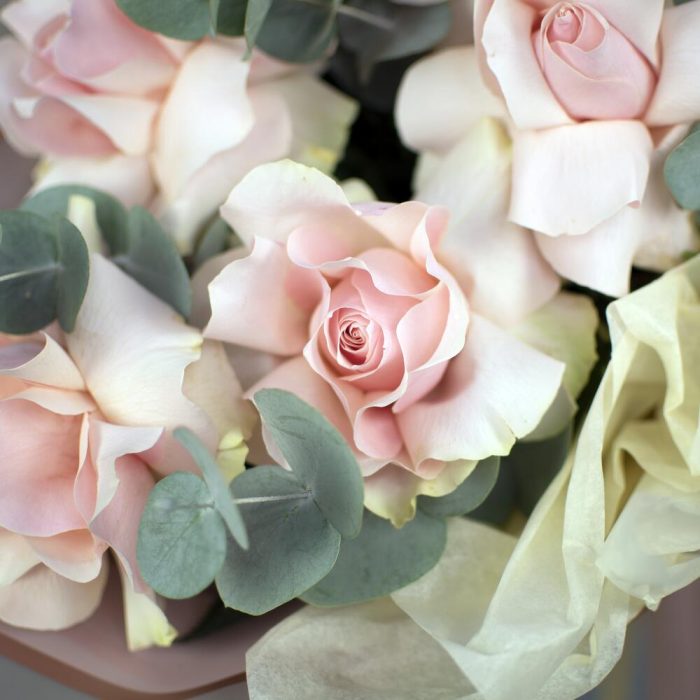 Роза французская – 7 шт.Эвкалипт – 2 шт.