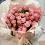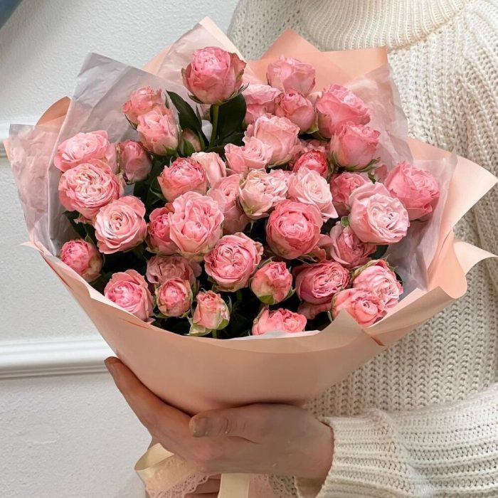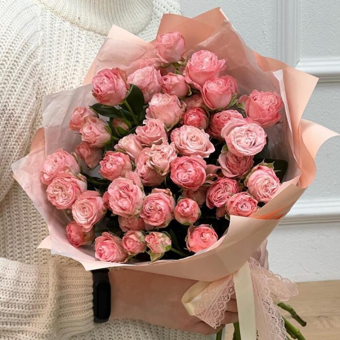 Необычные кустовые розы в приятном розовом оттенке для самой нежной и ласковой!