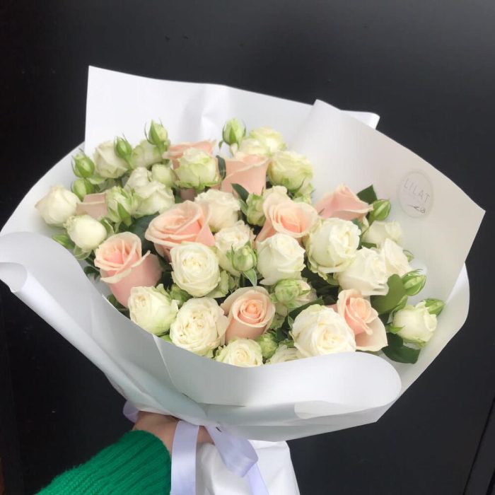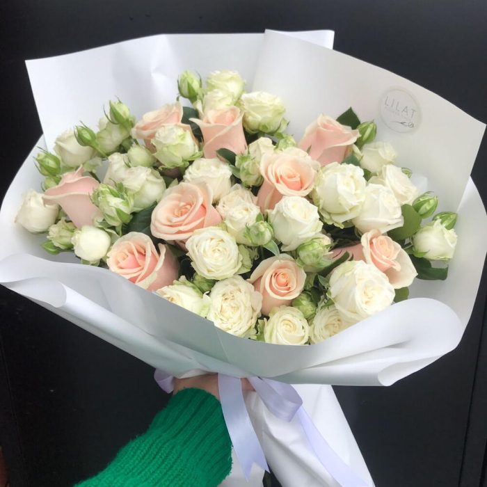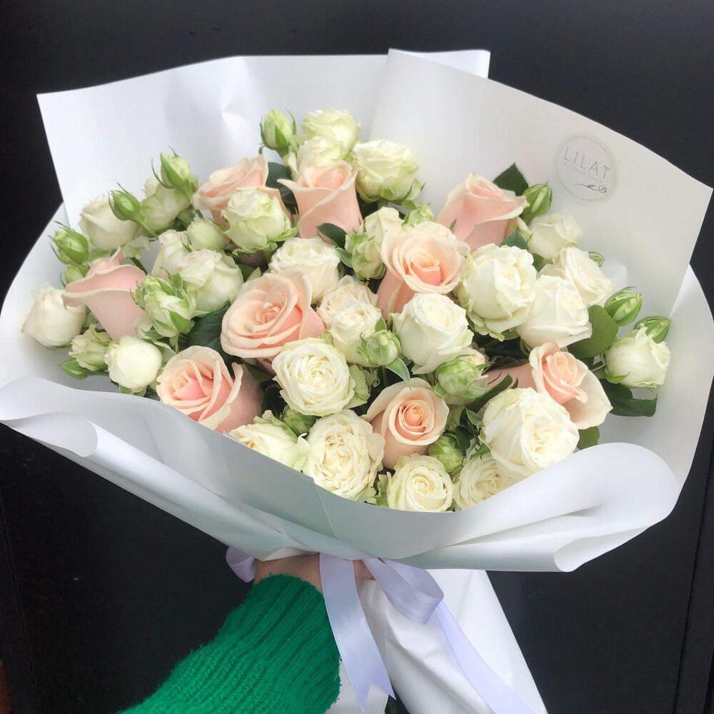 Альстромерии, Кустовые розы, Лизиантусы, Пионовидные розы, Розы, Ромашки