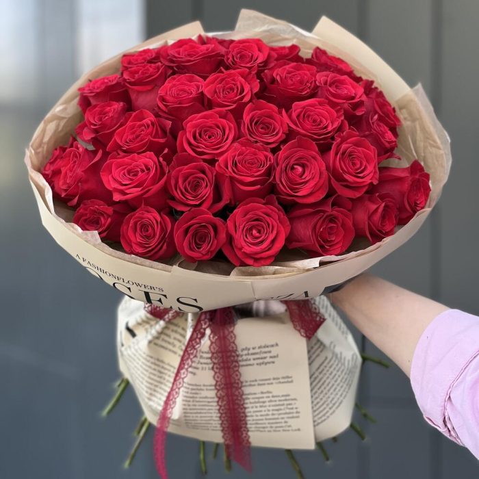 Красная роза – 35 шт. Оформление – 1 шт.