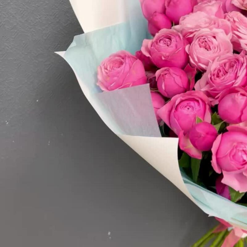 Лента – 2 шт.Тишью – 2 шт.Пленка матовая – 2 шт.роза сильва пинк пионовидная – 15 шт.