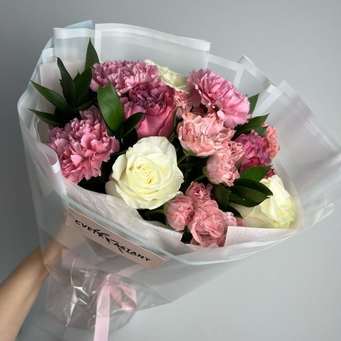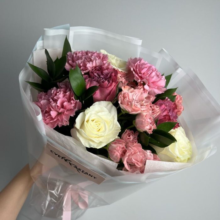 Гвоздики, Кустовые розы, Лизиантусы, Пионовидные розы, Розы