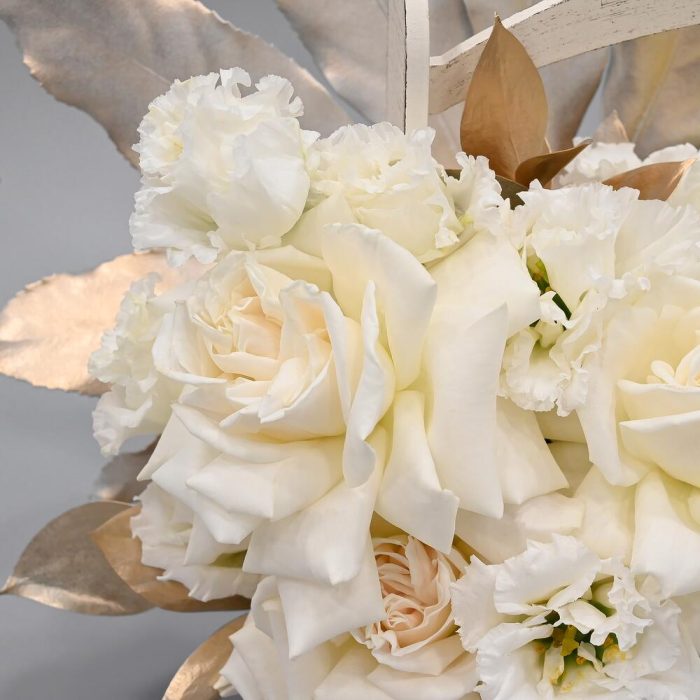 “Атлас☁️” – цветочная композиция с зефиром в деревянном ящике