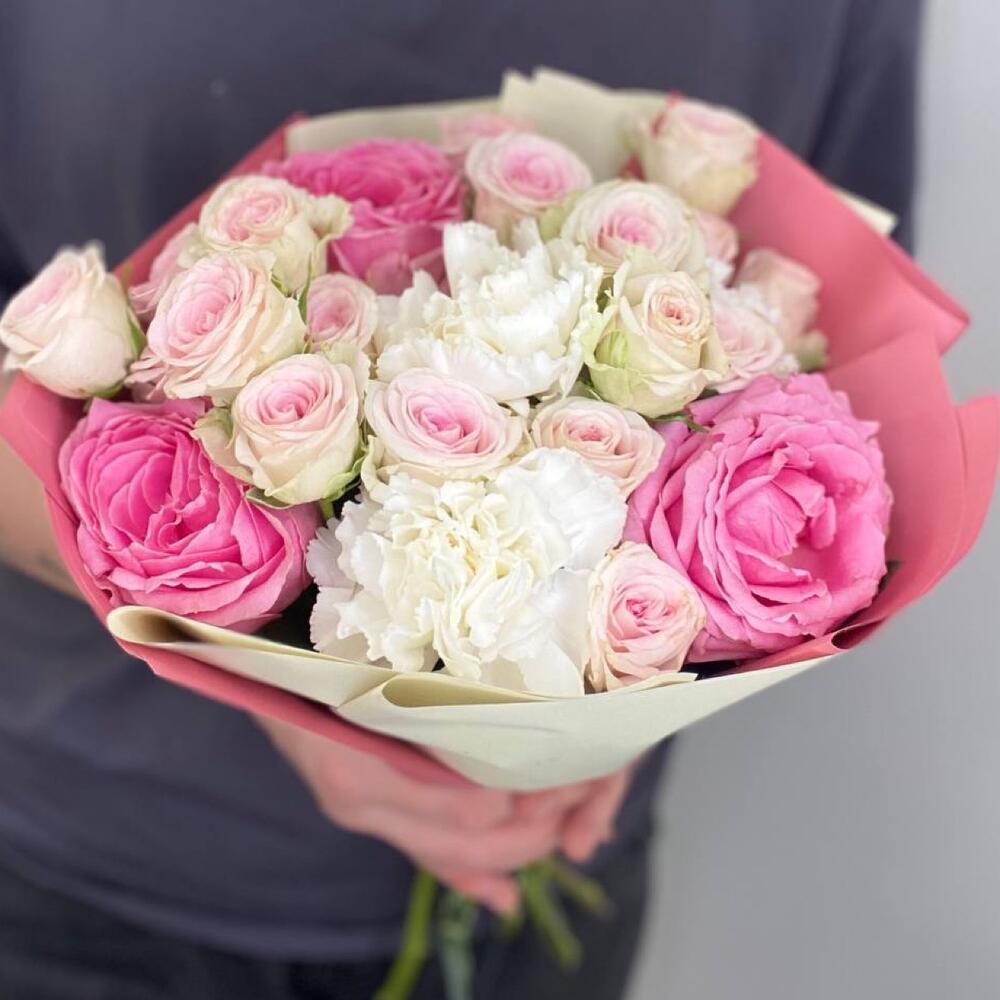 Альстромерии, Кустовые розы, Лизиантусы, Пионовидные розы, Розы, Ромашки