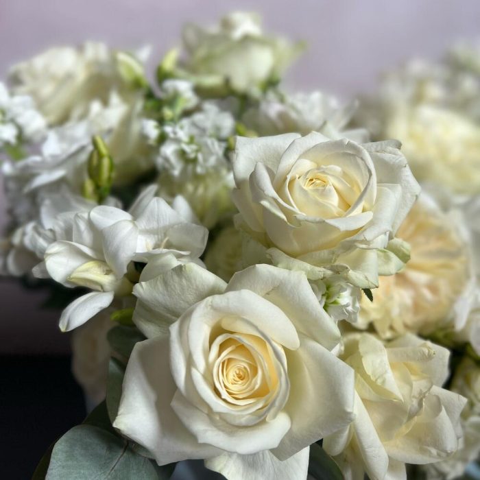 Композиция, вдохновляющая своей нежностью и воздушностью одновременно. Стильная коробочка, насыщенного светлого серого оттенка, стала оформлением для прекрасных цветов. Преподносите эти прекрасные цветы своим любимым, и вы увидите бескрайнюю нежность в их глазах.Доставим быстро и бережно.* К сожалению, мы не можем гарантировать 100% копию букета. Еженедельно к нам в салон приезжают свежие цветы и они могут отличаться друг от друга. Мы гарантируем вам соблюсти состав и общий стиль вашего букета. Букет из живых цветов мы начинаем собирать после оформления заказа.