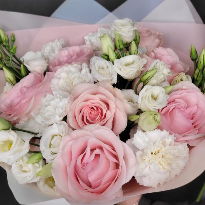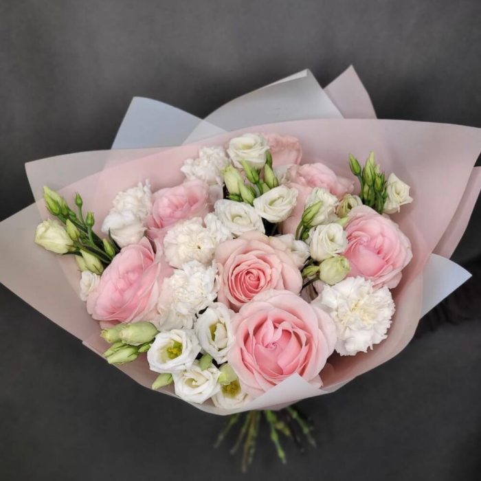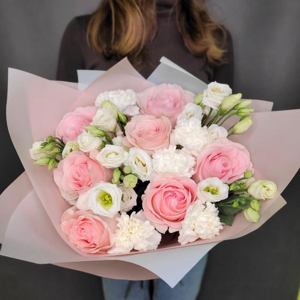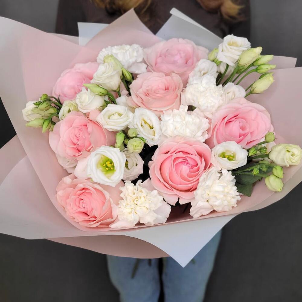 Категории: Гвоздики, Лизиантусы, Розы
