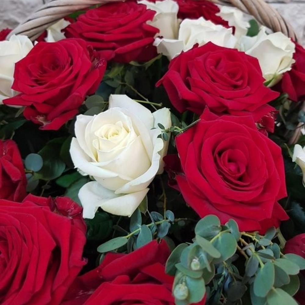 Корзина 51 красно-белая роза