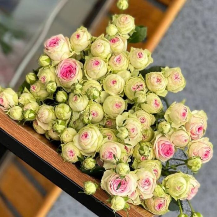 Альстромерии, Кустовые розы, Лизиантусы, Пионовидные розы, Розы, Ромашки