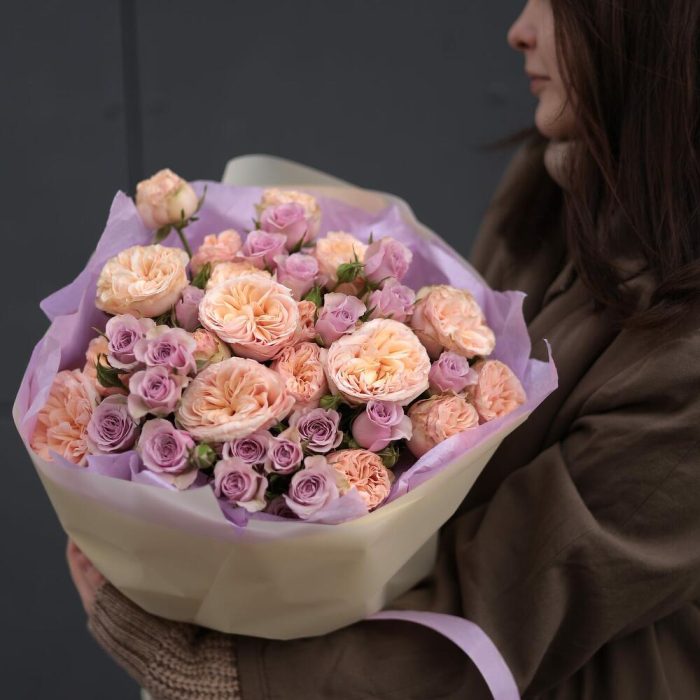 Гвоздики, Кустовые розы, Пионовидные розы, Розы