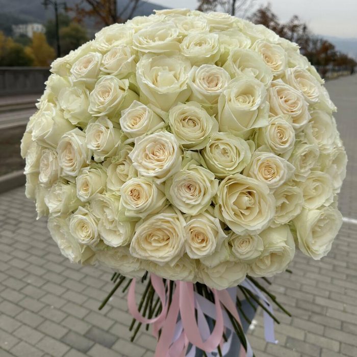 Метки: 101 роза, Белые розы, от 5000 руб, Роза 70 см