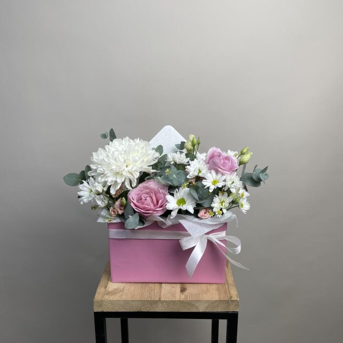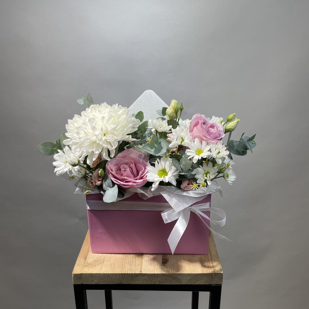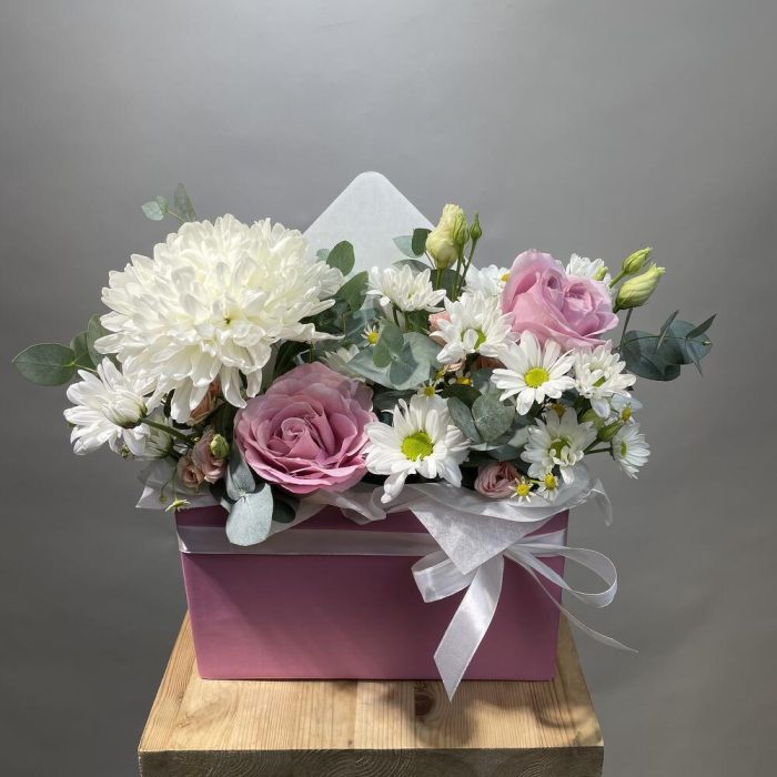 Альстромерии, Гвоздики, Кустовые розы, Лизиантусы, Розы, Хризантемы
