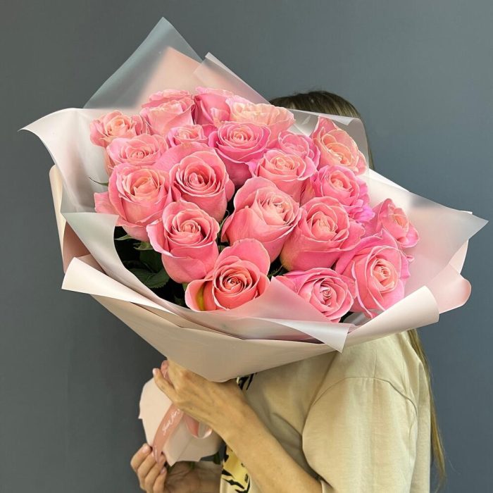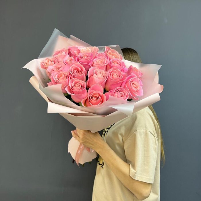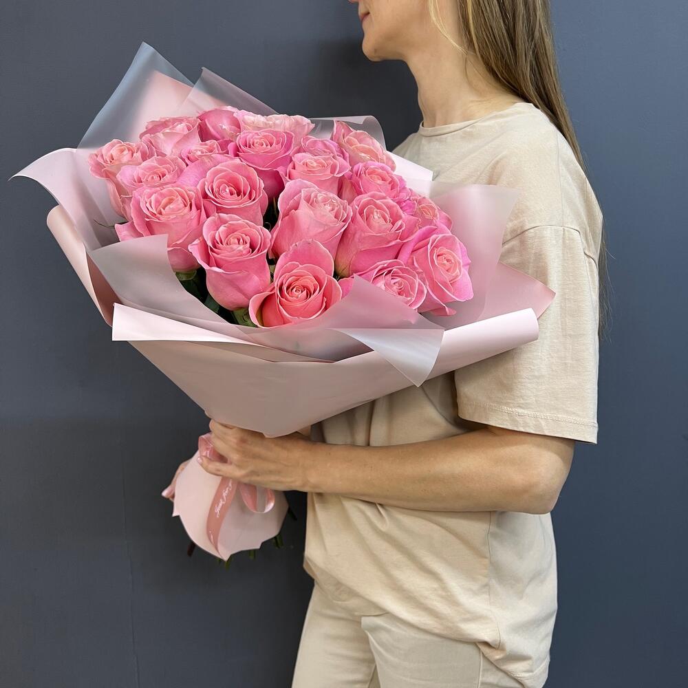Атласная лента – 1 шт.Роза Эквадор 60 см – 21 шт.Дизайнерская упаковка – 1 шт.