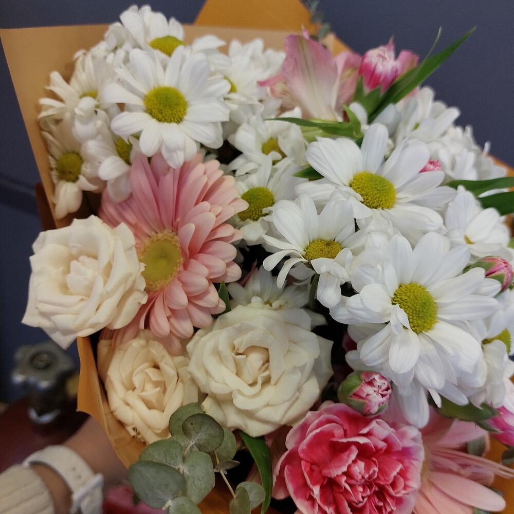 Букет из кустовой розы Бомбастик и Ромашки Матрикарии