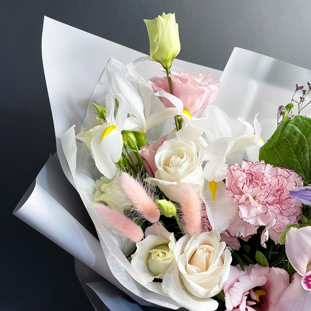 Гвоздики, Кустовые розы, Лизиантусы, Пионовидные розы, Розы