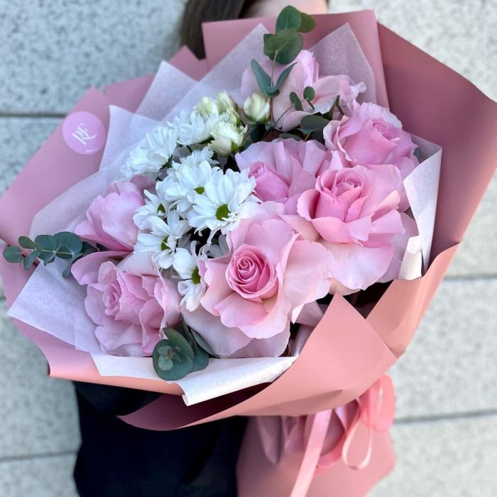 Гвоздики, Кустовые розы, Пионовидные розы, Розы