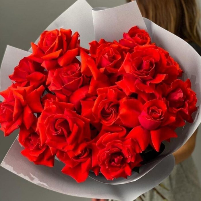 Роза Нина – 15 шт.Упаковка дизайнерская – 5 шт.Лента атласная – 1 шт.