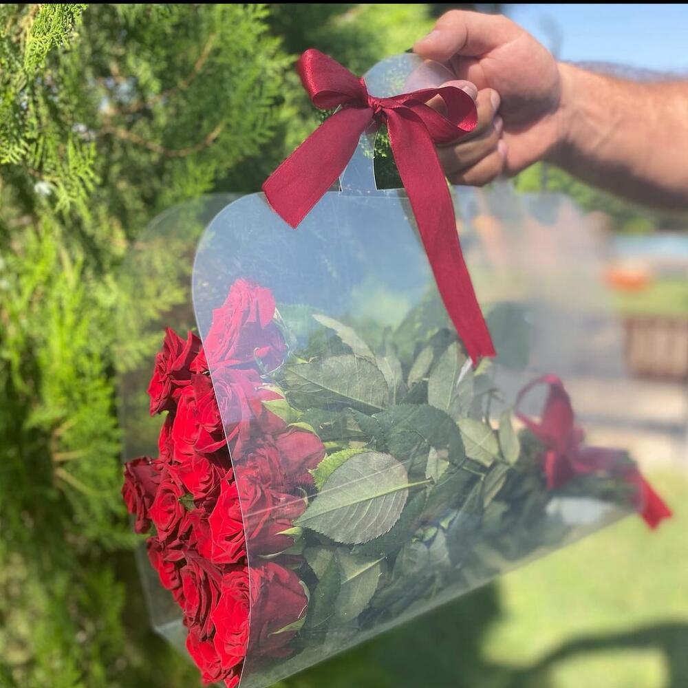 Роза Голландская – 21 шт. дизайнерская сумочка – 1 шт.