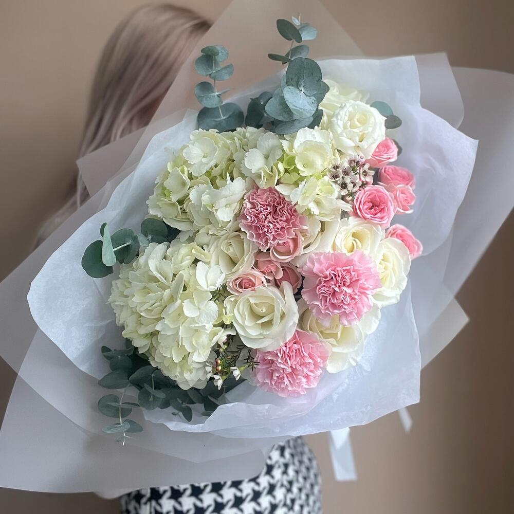 Этюд в розовых тонах с пионами и гортензиями