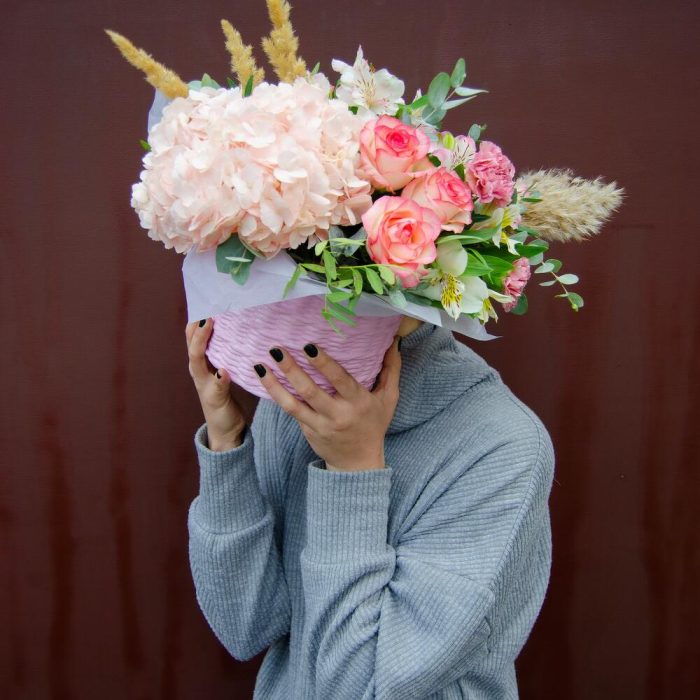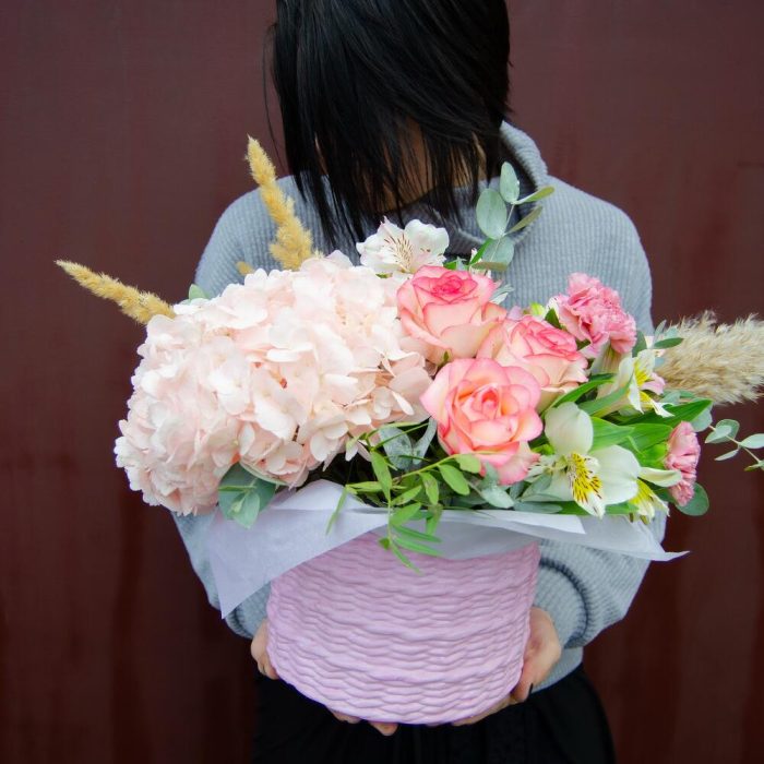 Категорий: Альстромерии, Гвоздики, Гортензии, Диантус, Розы, Эвкалипт