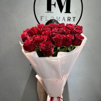 mono bouquet 89 из 25 кустовых пионовидных роз сорта classic sensation и эвкалипта